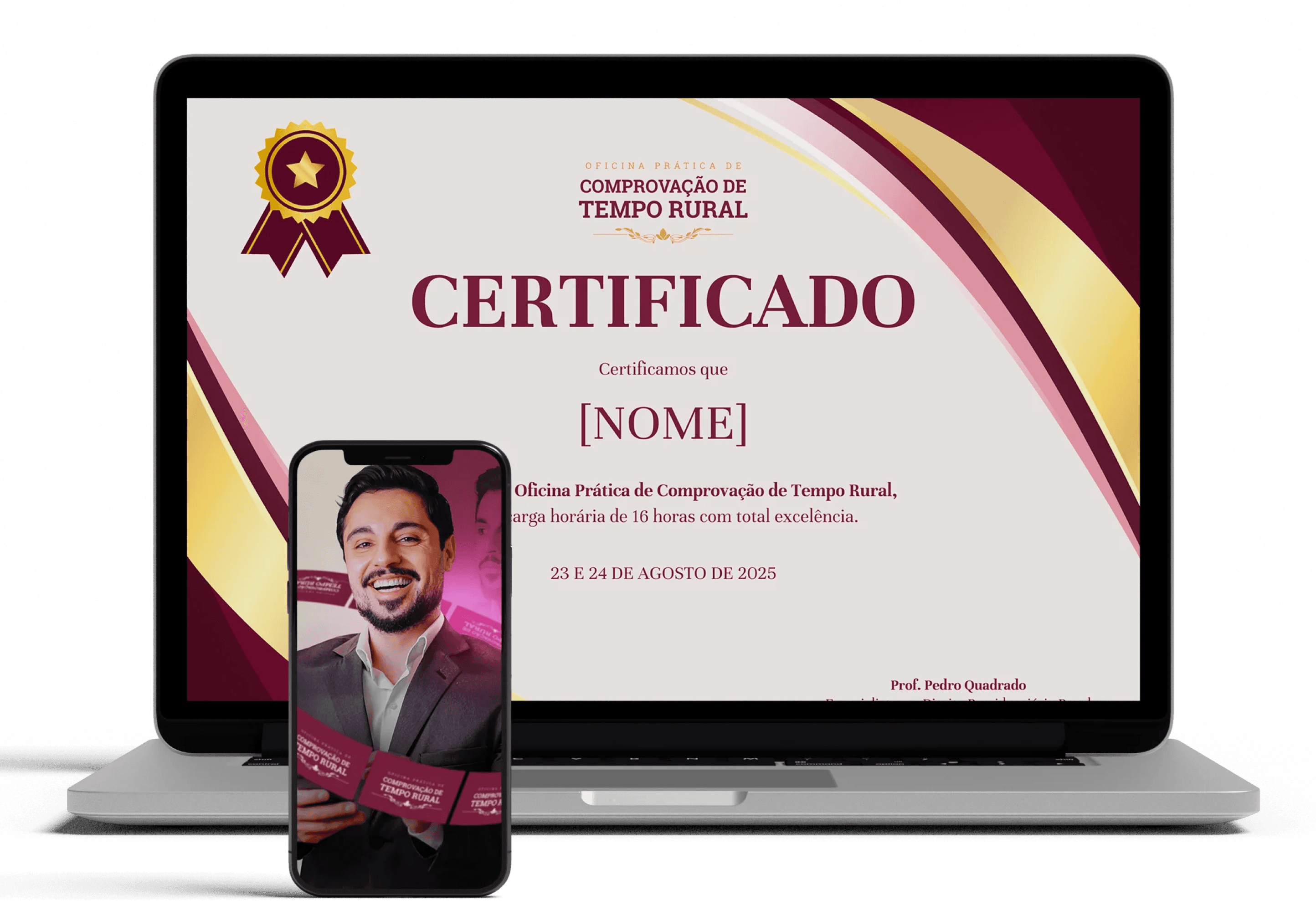 Além de todo o conteúdo, que vai mudar sua visão sobre a averbação de tempo rural, ao final, você ainda recebe um certificado da sua participação na Oficina.